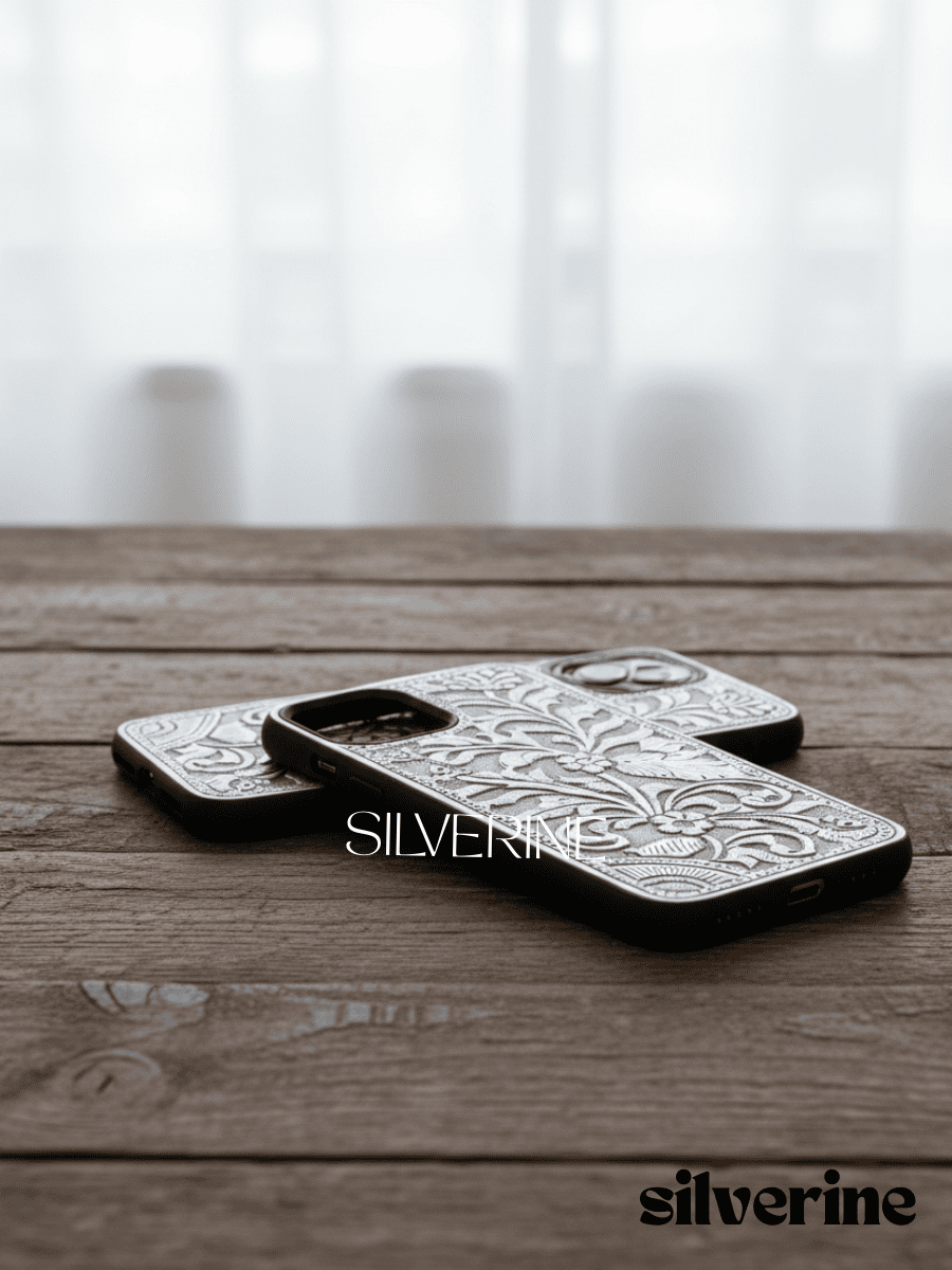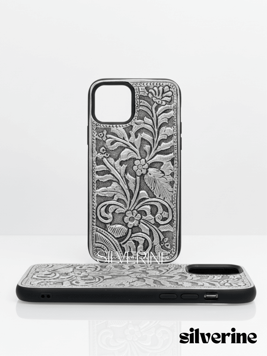 Elegant and durable, this handcrafted silver phone cover blends timeless artistry with modern protection. Each piece is uniquely crafted to add a touch of luxury and sophistication to your device.