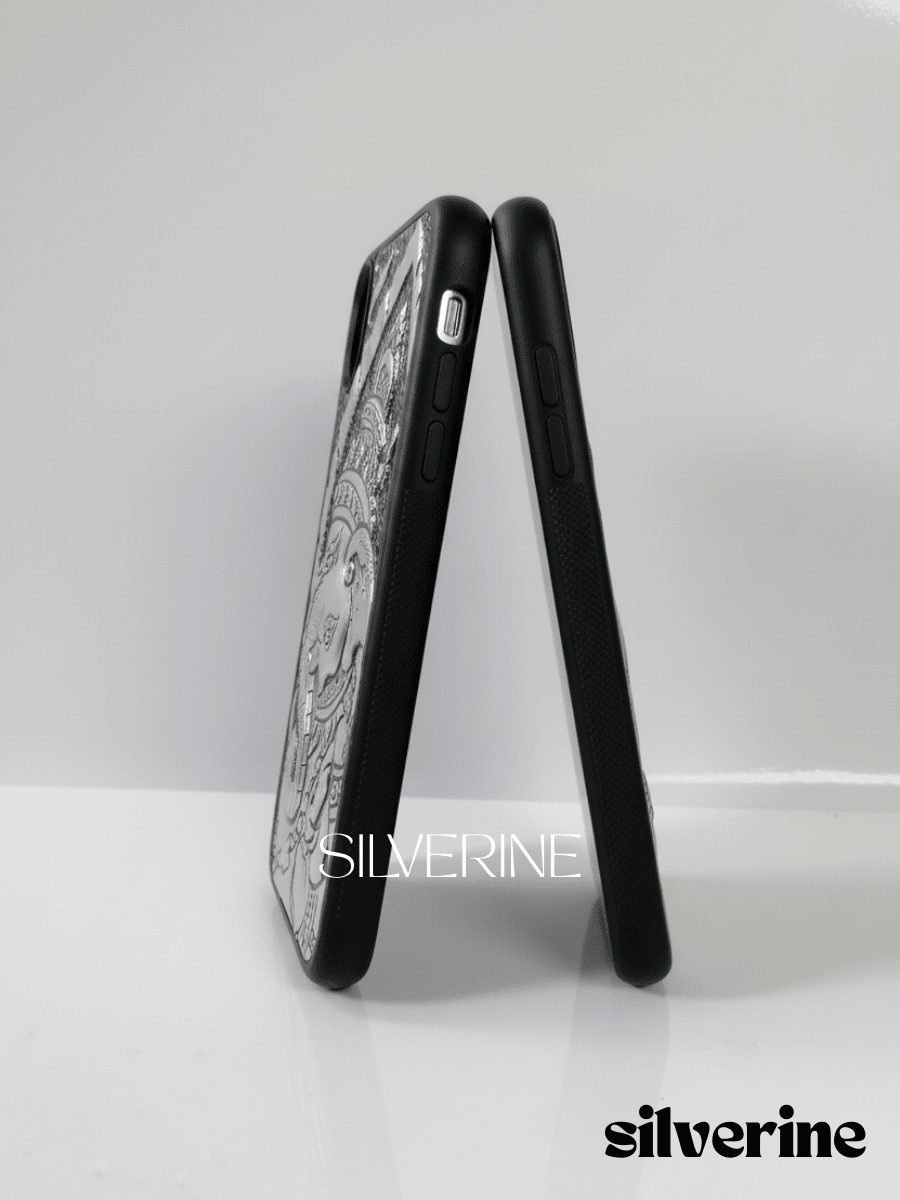ATTRACTIVE SILVER PHONE CASE, SYMBOLIZING HERITAGE, ROYALTY & LUXURY.